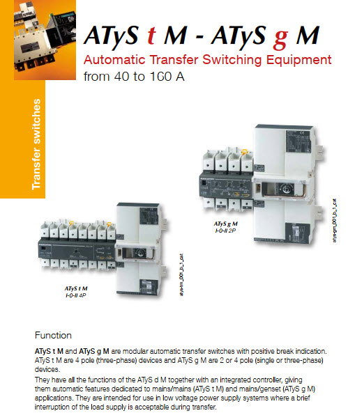 Серията ATyS g M са монофазни или трифазни АВР-и с вграден контролер "мрежа-генератор" или "мрежа-мрежа" .