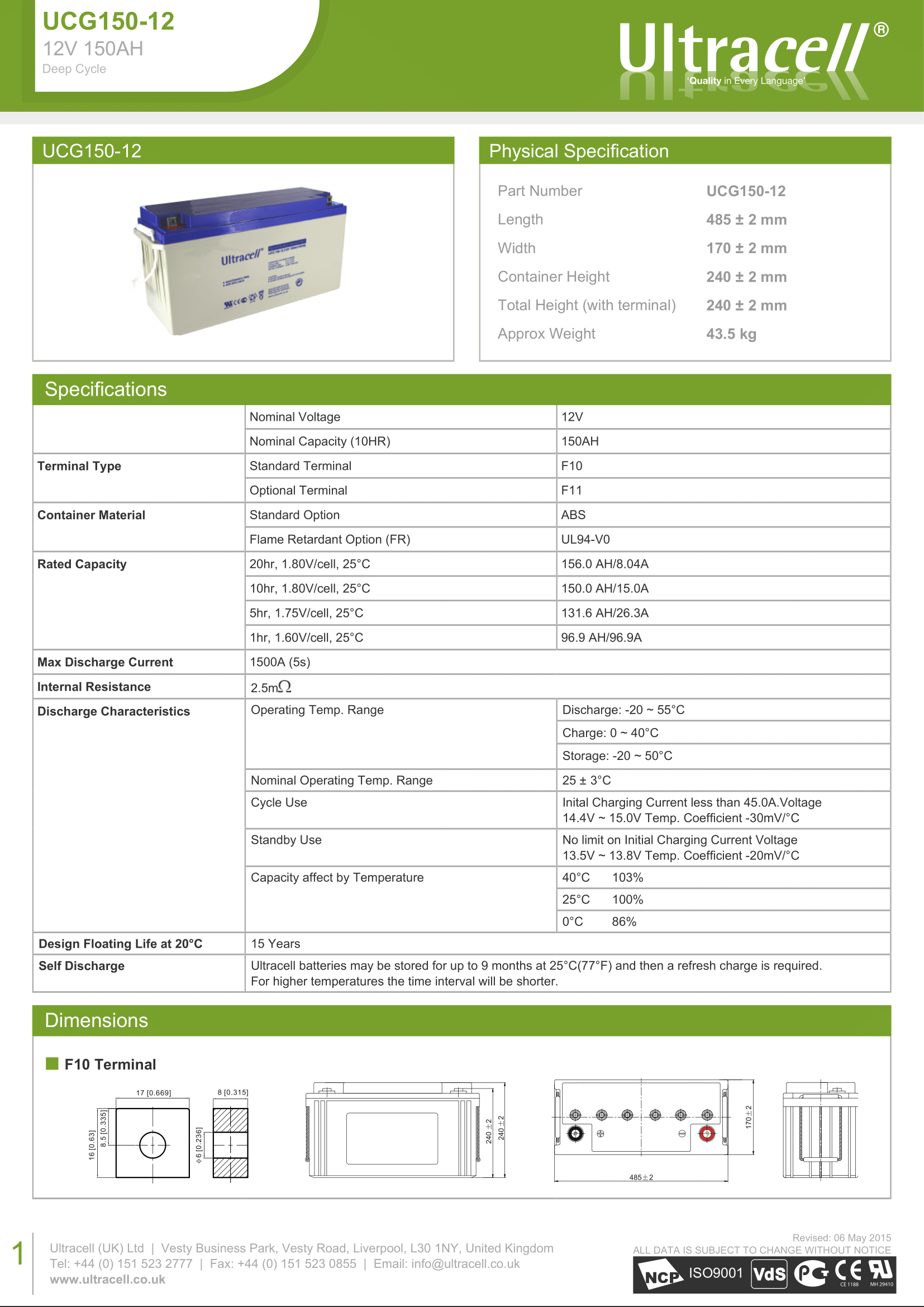| Капацитет | 150 AH |