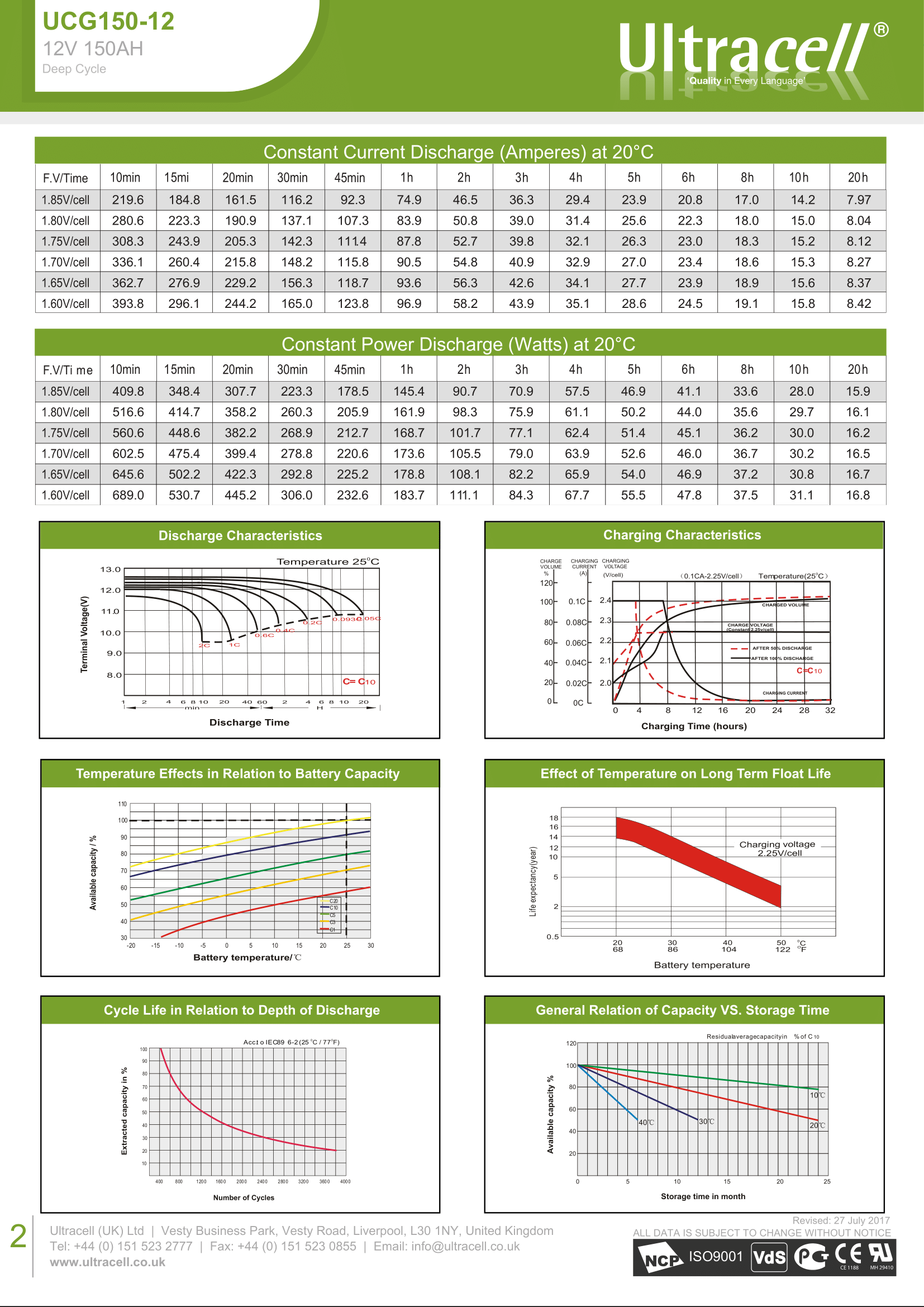 Акумулаторна батерия Ultracell с номинално напрежение 12V и нормален капацитет 150 AH.