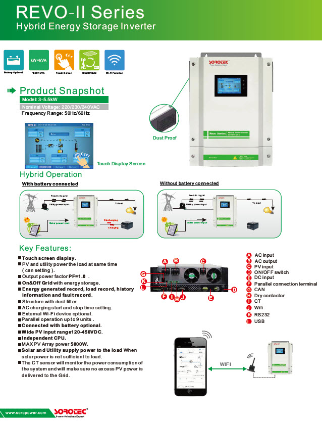 ON / OFF-GRID Соларен инвертор REVO-II 5,5 K -48V WiFi Touch Screen
